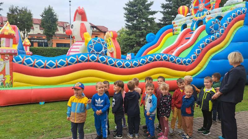Dodatkowo na przedszkolnym podwórku, na dzieci czakały kolorowe i wielkie dmuchańce. A na deser słodka wata cukrowa oraz popcorn. Radość i śmiech świadczyły o wspaniałej zabawie. Życzymy wszystkim maluszkom i starszakom samych słonecznych dni i radosnych chwil w naszym przedszkolu, aby każdy dzień był wspaniałą przygodą i niósł ze sobą wiele cudownych i pozytywnych doświadczeń.